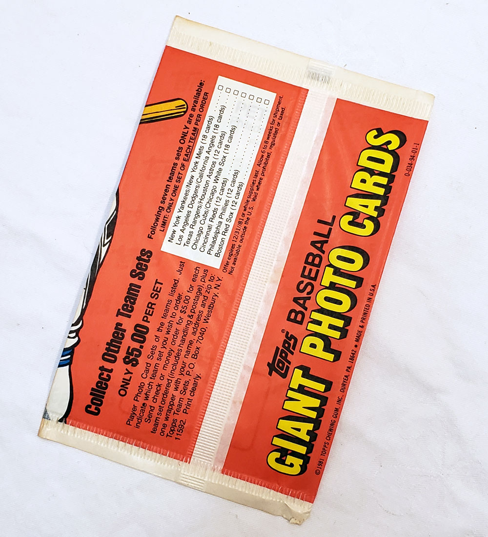 One unopened sealed pack of 1981 Topps baseball giant photo cards – Home Team Series. This collection contains 1 5×7 inch card per pack and contains 1 of 12 Philadelphia Phillies players that was identified using a light source held to the white area on back of each package. Package is in good shape and may have yellowing on corners and edges. *FREE Shipping*