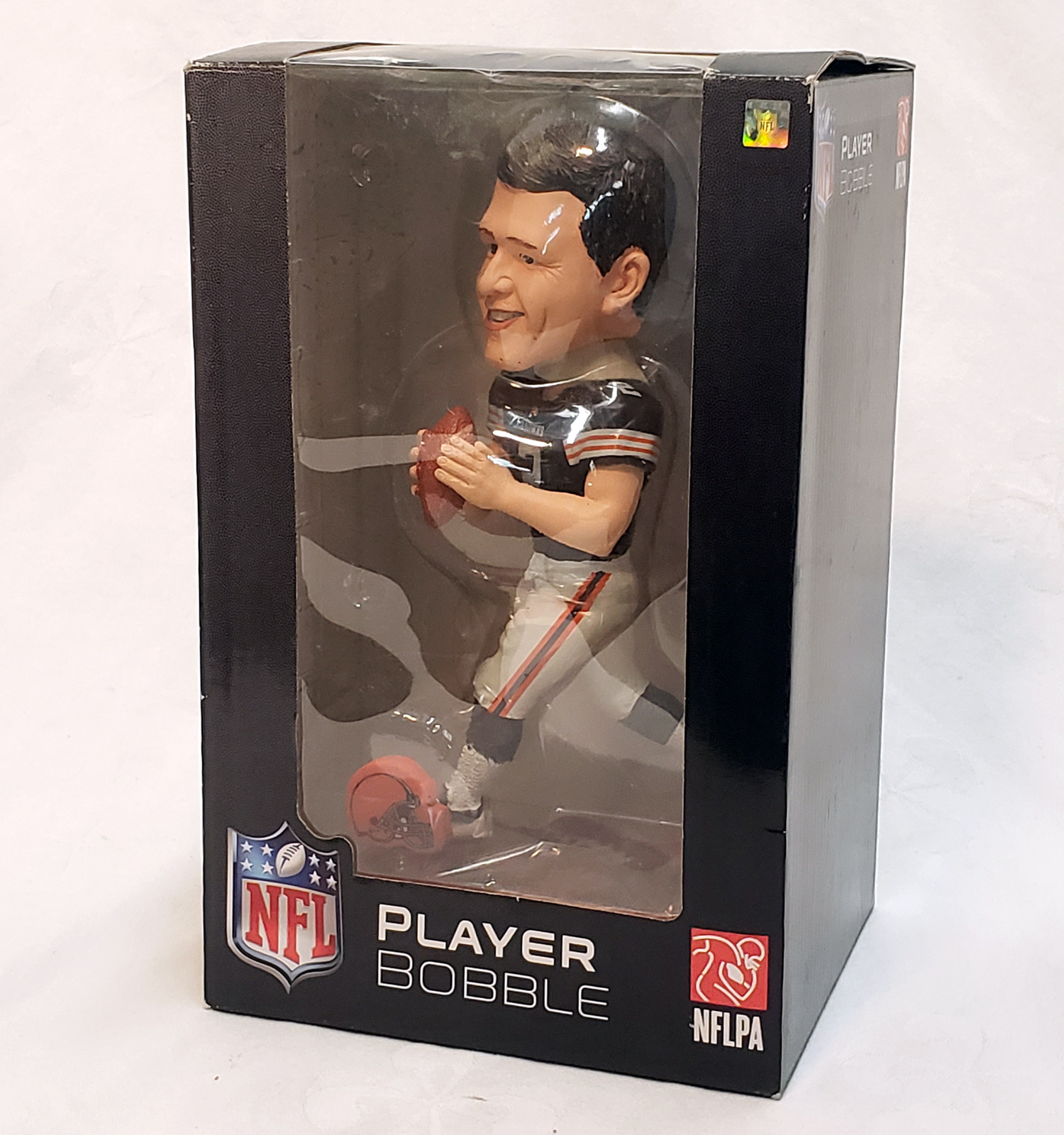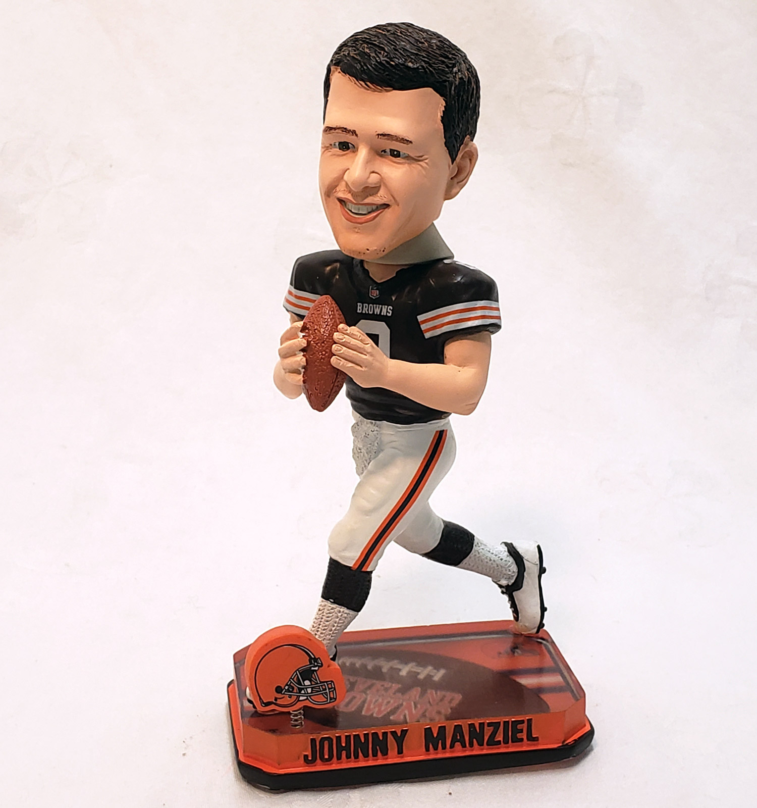 Browns Johnny Manziel Springy Logo Bobblehead. This limited-edition 2014 bobblehead stands approximately 8 inches tall and features Manziel in his Cleveland Browns uniform. The head bobbles with that signature springy motion for added fun and movement. Limited Edition (numbered on bottom out of 2,014 pieces).