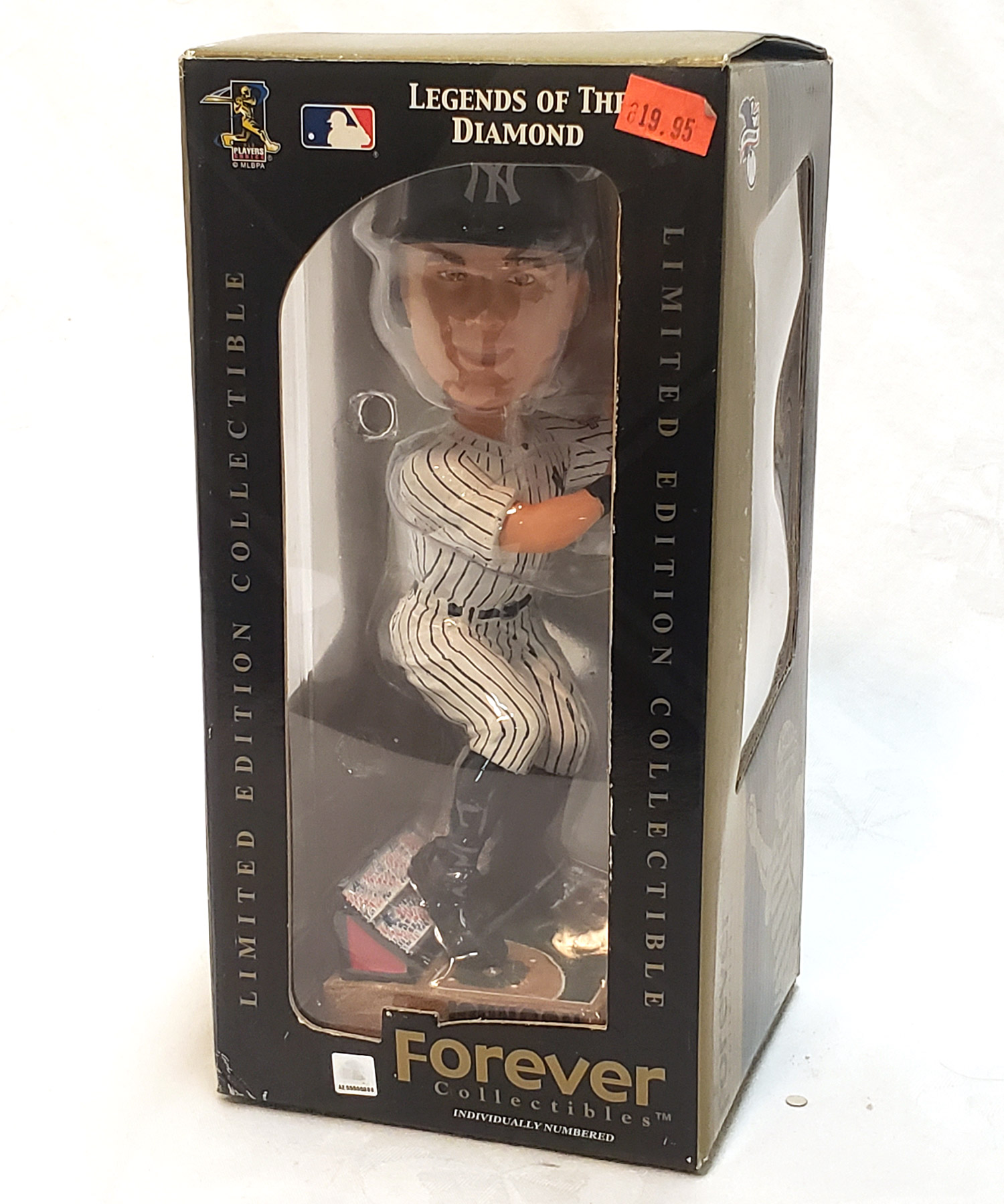 NY Yankees Nick Johnson Stadium Base Bobblehead. This limited edition collectible “Legends Of The Field” bobble head features Nick Johnson of the New York Yankees. These are hand crafted and highly detailed collectible bobble head dolls. The “Legends of the Field” line commemorates the most skilled & brightest stars of the MLB. These bobble heads display the emotion & intricacies of the individual players they portray, and capture the true essence on the diamond. They measure about 7 inches tall and are made of a resin material. They are limited editions of 5,000 and hand numbered on the bottom. Made by Forever Collectibles. These bobbles are an officially licensed product by Players Inc. and the MLB and comes in the original box which are in nice shape but may show signs of storage.
